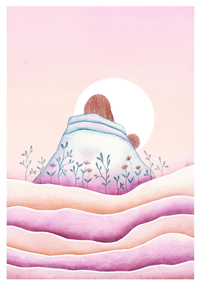 Aquarelle numérisée et imprimée à l'encre végétale sur papier recyclé.